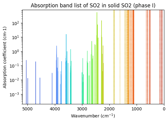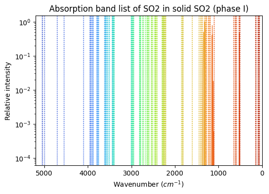 - Absorption band list of SO2 in solid SO2 (phase I)