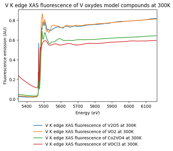 - Ould-Chikh, Samy; Hazemann, Isabelle; Hazemann, Jean-Louis; Barman, Samir; Maity, Niladri; Bendjeriou-Sedjerari, Anissa (2014): V K edge XAS fluorescence of V oxydes model compounds at 300K. SSHADE/FAME (OSUG Data Center). Dataset/Spectral Data. https://doi.org/10.26302/SSHADE/EXPERIMENT_SO_20140723_001