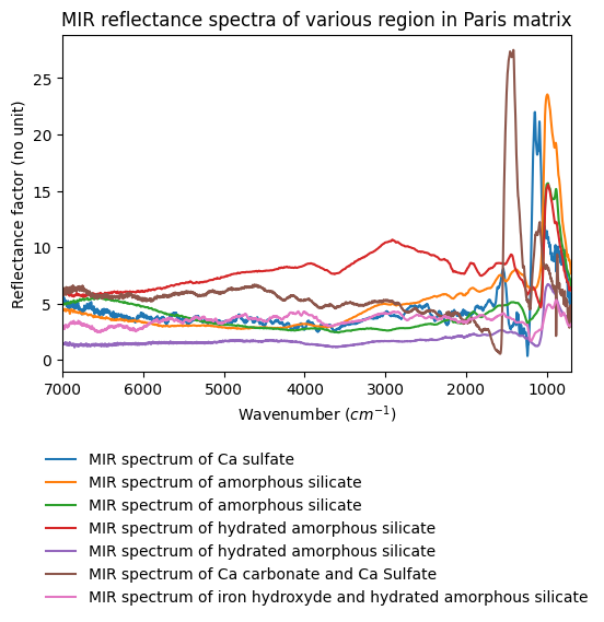- Baklouti, Donia (2021): MIR reflectance spectra of various region in Paris matrix. SSHADE/DAYSY (OSUG Data Center). Dataset/Spectral Data. https://doi.org/10.26302/SSHADE/EXPERIMENT_ZED_20260213_01