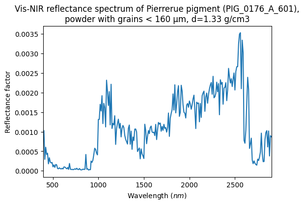 - Schmitt, Bernard; Chalmin-Aljanabi, Emilie; Chassin de Kergommeaux, Aurélie (2019): Vis-NIR reflectance spectra of Pierrerue pigments (PIG_0176_A): raw blocks, powders, plots and painted matter. SSHADE/PIG (OSUG Data Center). Dataset/Spectral Data. https://doi.org/10.26302/SSHADE/EXPERIMENT_BS_20200814_100