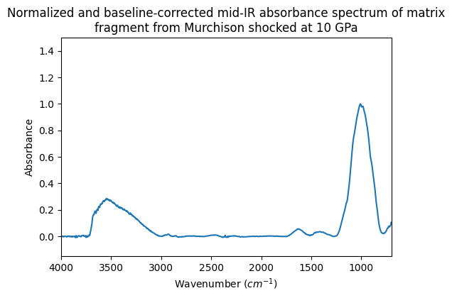 - Quirico, Eric (2010): Mid-IR absorbance spectra, normalized and baseline-corrected, of matrix and IOM fragments extracted from unshocked and shocked Murchison (CM2 chondrite) acquired under vacuum and at T = 80°C. SSHADE/GhoSST (OSUG Data Center). Dataset/Spectral Data. https://doi.org/10.26302/SSHADE/EXPERIMENT_LB_20240821_001