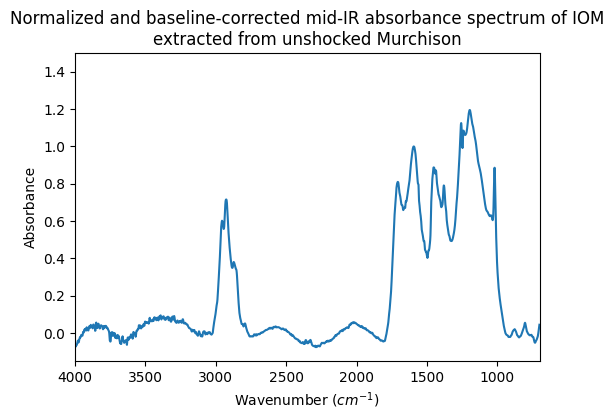 Normalized and baseline-corrected mid-IR absorbance spectrum of IOM extracted from unshocked Murchison