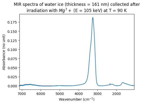 - Moingeon, Audrey; Quirico, Eric; Poch, Olivier; Faure, Mathilde; Boduch, Philippe; Domaracka, Alicja; Rothard, Hermann (2024): MIR spectra collected before and after irradiation experiments (with different ions at varying energy) of crystalline water ice at temperature from 20 K to 120 K. SSHADE/GhoSST (OSUG Data Center). Dataset/Spectral Data. https://doi.org/10.26302/SSHADE/EXPERIMENT_LB_20250630_001