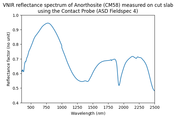 - Barthez, Marie; Flahaut, Jessica (2022): Visible and near-infrared spectra of terrestrial feldspathic plutonic rocks, and of their plagioclase minerals. SSHADE/Mirabelle (OSUG Data Center). Dataset/Spectral Data. https://doi.org/10.26302/SSHADE/EXPERIMENT_MB_20260302_0002