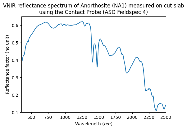 - Barthez, Marie; Flahaut, Jessica (2022): Visible and near-infrared spectra of terrestrial feldspathic plutonic rocks, and of their plagioclase minerals. SSHADE/Mirabelle (OSUG Data Center). Dataset/Spectral Data. https://doi.org/10.26302/SSHADE/EXPERIMENT_MB_20260302_0002