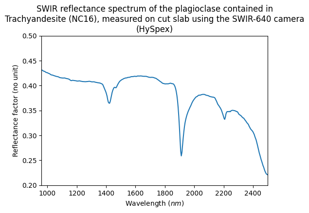 - Barthez, Marie; Flahaut, Jessica (2022): Visible and near-infrared spectra of terrestrial feldspathic volcanic rocks, and of their plagioclase minerals. SSHADE/Mirabelle (OSUG Data Center). Dataset/Spectral Data. https://doi.org/10.26302/SSHADE/EXPERIMENT_MB_20260302_0001