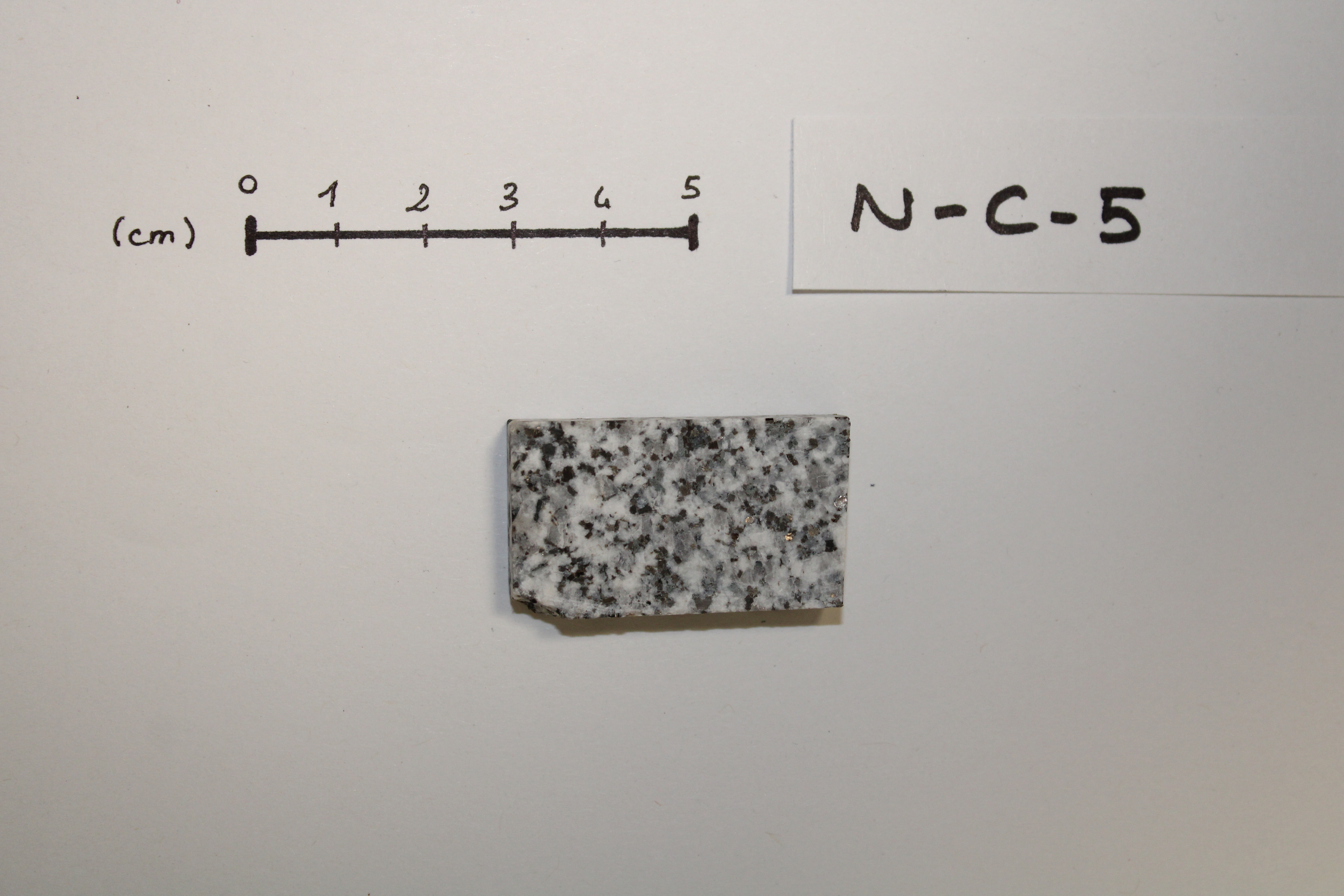 Granodiorite (NC5) sample cut in the form of a sugar.