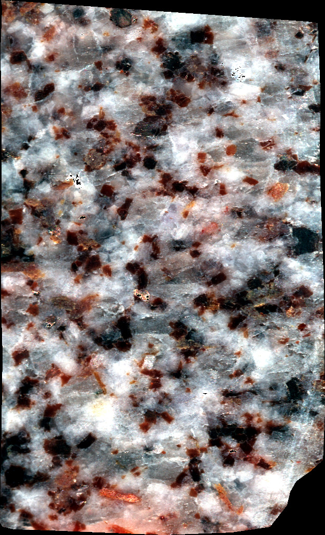 NC5 sample cut in the form of a sugar. This plutonic rock is mainly composed of plagioclase, quartz, biotite amphibole and K-feldspar.