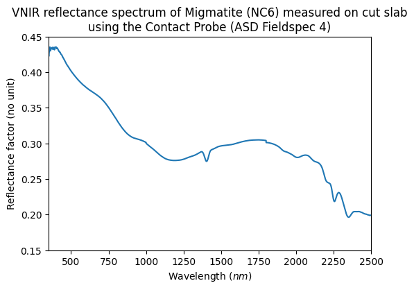 - ASD Fieldspec4 – biconical reflection Visible to near-infrared