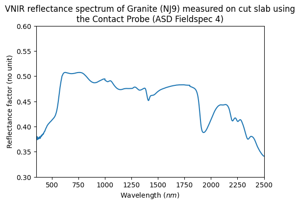 - 350.0 - 1000.0 $nm$ ; 1001.0 - 2500.0 $nm$