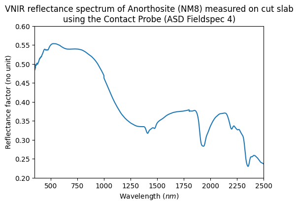 - Barthez, Marie; Flahaut, Jessica (2022): Visible and near-infrared spectra of terrestrial feldspathic plutonic rocks, and of their plagioclase minerals. SSHADE/Mirabelle (OSUG Data Center). Dataset/Spectral Data. https://doi.org/10.26302/SSHADE/EXPERIMENT_MB_20260302_0002