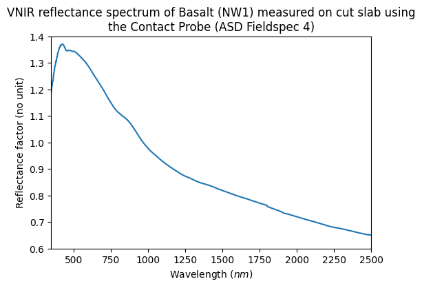 - ASD Fieldspec4 – biconical reflection Visible to near-infrared
