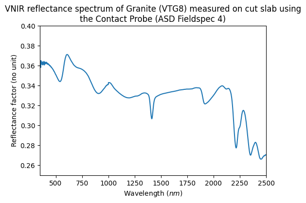 - ASD Fieldspec4 – biconical reflection Visible to near-infrared