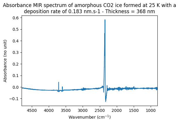 - Fray, Nicolas; Bouilloud, Michaëlle (2012): MIR absorbance spectra of amorphous CO2 ice at 25K for different deposition rates and different thicknesses. SSHADE/SCOOP (OSUG Data Center). Dataset/Spectral Data. https://doi.org/10.26302/SSHADE/EXPERIMENT_NF_20250620_001