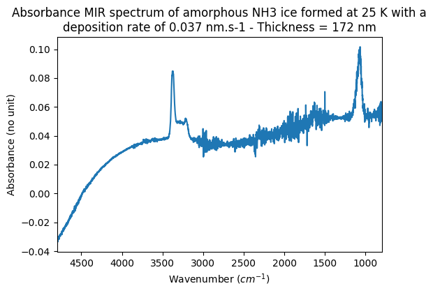 - Fray, Nicolas; Bouilloud, Michaëlle (2012): MIR absorbance spectra of amorphous NH3 ice at 25K for different deposition rates and different thicknesses. SSHADE/SCOOP (OSUG Data Center). Dataset/Spectral Data. https://doi.org/10.26302/SSHADE/EXPERIMENT_NF_20250625_001