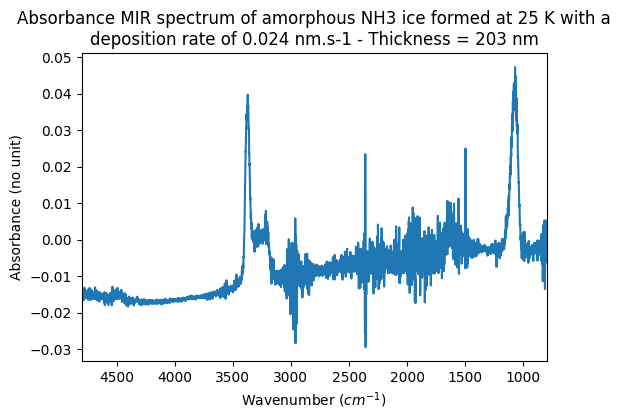 - Fray, Nicolas; Bouilloud, Michaëlle (2012): MIR absorbance spectra of amorphous NH3 ice at 25K for different deposition rates and different thicknesses. SSHADE/SCOOP (OSUG Data Center). Dataset/Spectral Data. https://doi.org/10.26302/SSHADE/EXPERIMENT_NF_20250625_001