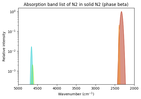 - Absorption band list of N2 in solid N2 (phase beta)