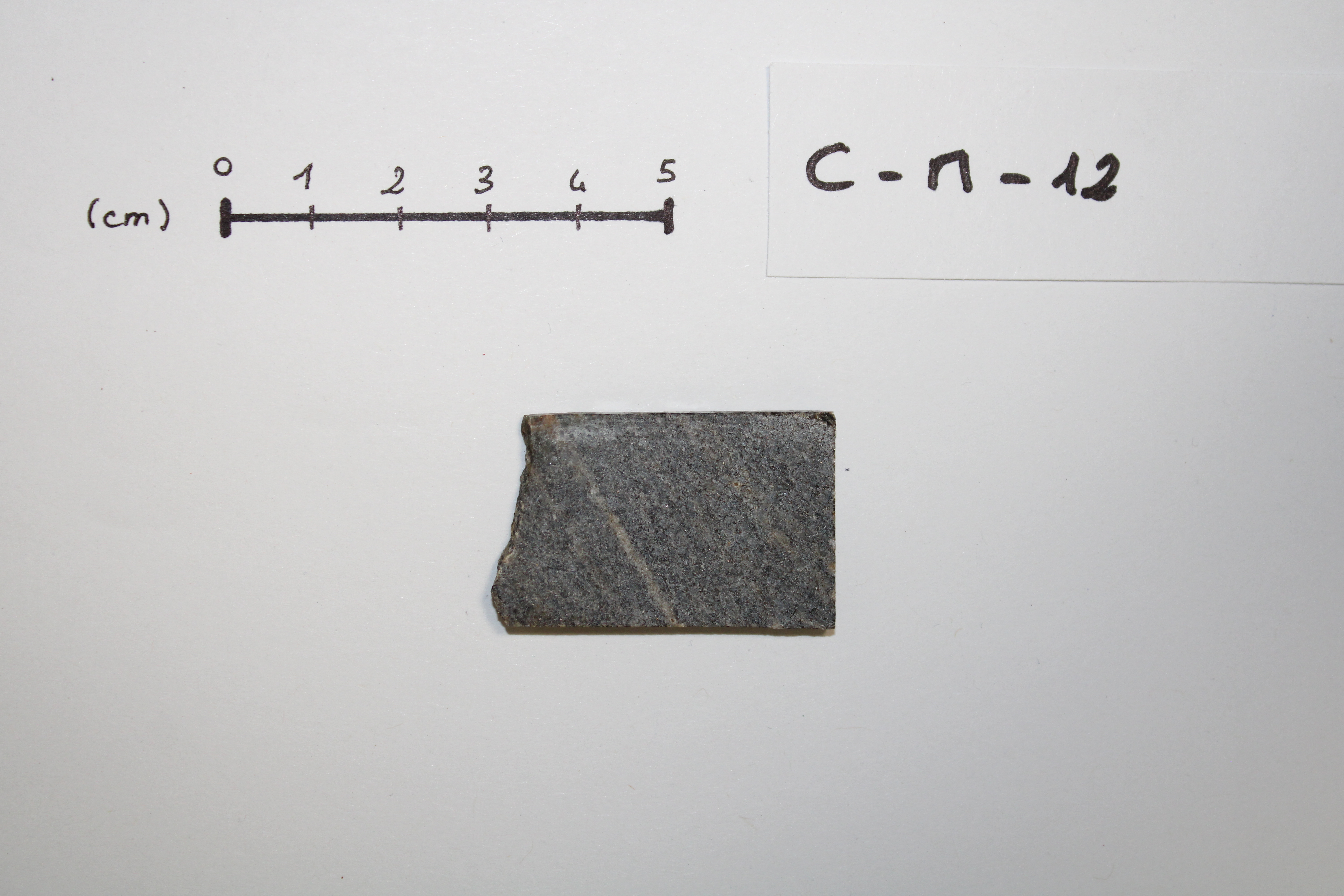 - CM12 sample cut in the form of a sugar. This plutonic rock is mainly composed of plagioclase, quartz and biotite (origin : Acasta, CANADA).