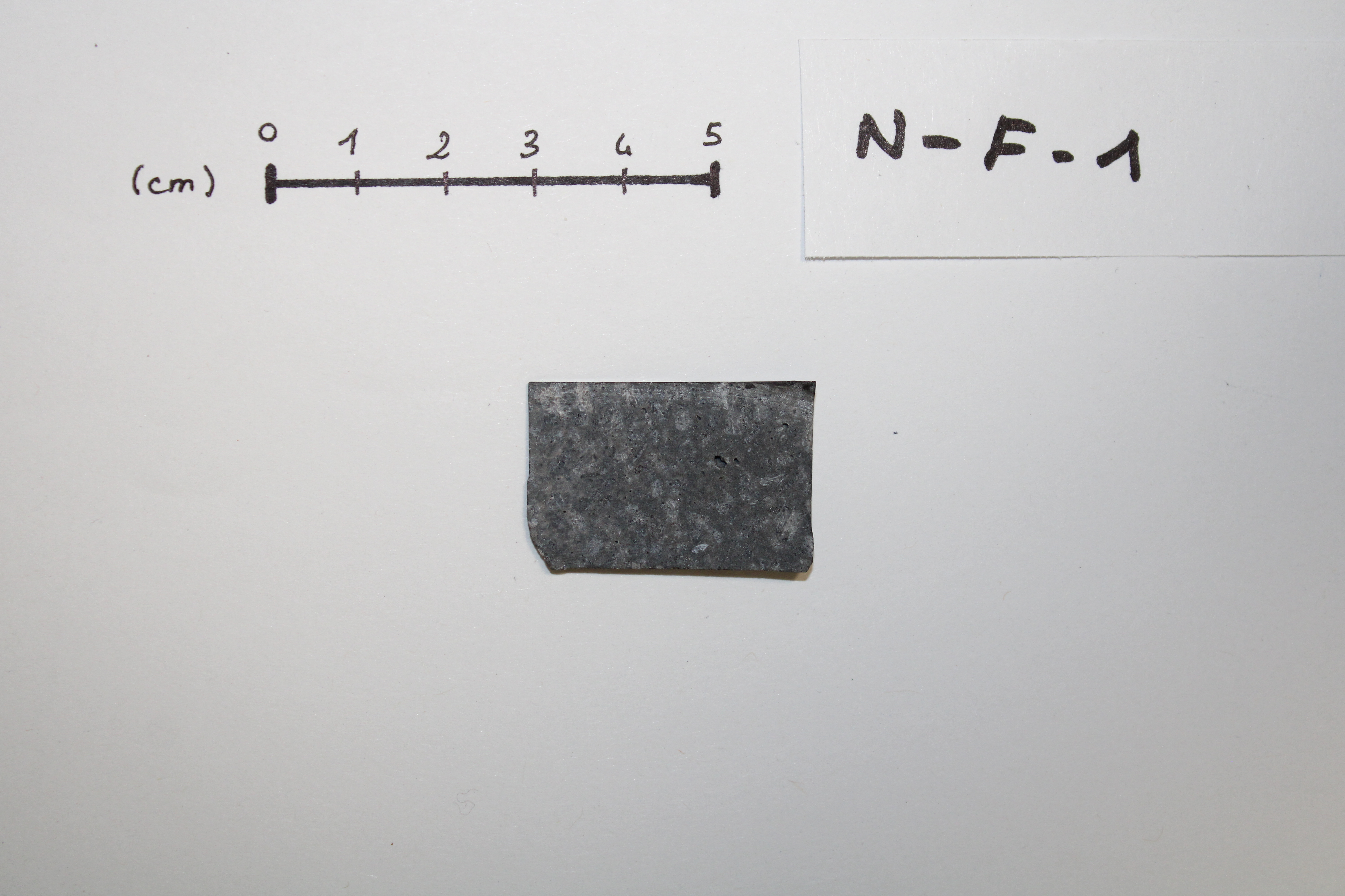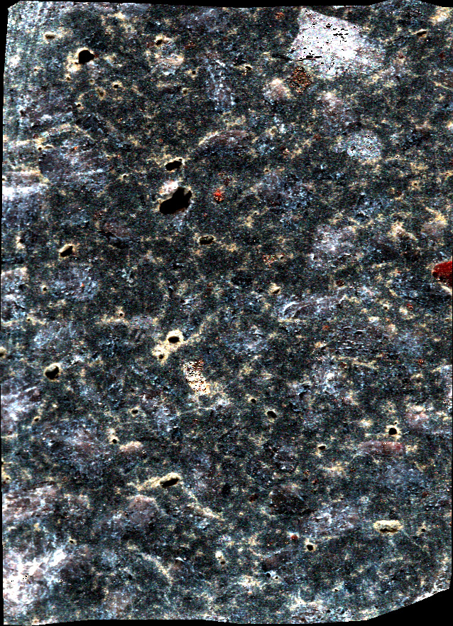 - NF1 sample cut in the form of a sugar. This volcanic rock is mainly composed of plagioclase, pyroxene and olivine (origin : La Reunion, FRANCE).