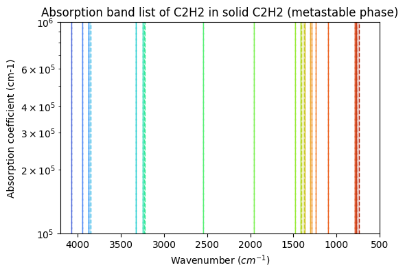 - Absorption band list of C2H2 in solid C2H2 (metastable phase)