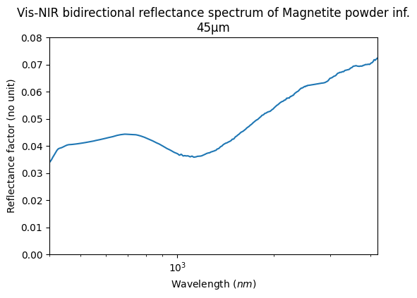 - Schmitt, Bernard (2021): Magnetite: Vis-NIR-MIR diffuse reflectance and Raman spectra. SSHADE/DRIMS (OSUG Data Center). Dataset/Spectral Data. https://doi.org/10.26302/SSHADE/EXPERIMENT_BS_20250903_001