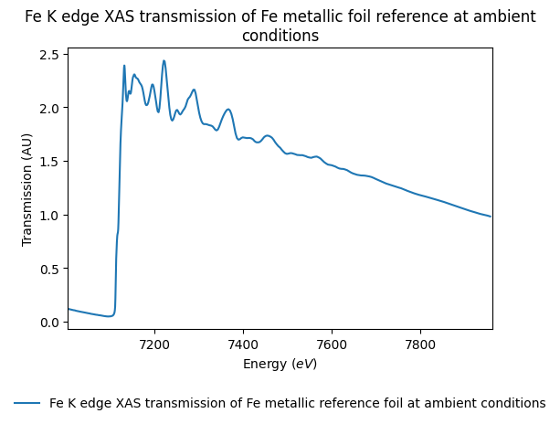 - Testemale, Denis (2016): Fe K edge XAS transmission of Fe metallic foil reference at ambient conditions. SSHADE/FAME (OSUG Data Center). Dataset/Spectral Data. https://doi.org/10.26302/SSHADE/EXPERIMENT_DT_20170706_006