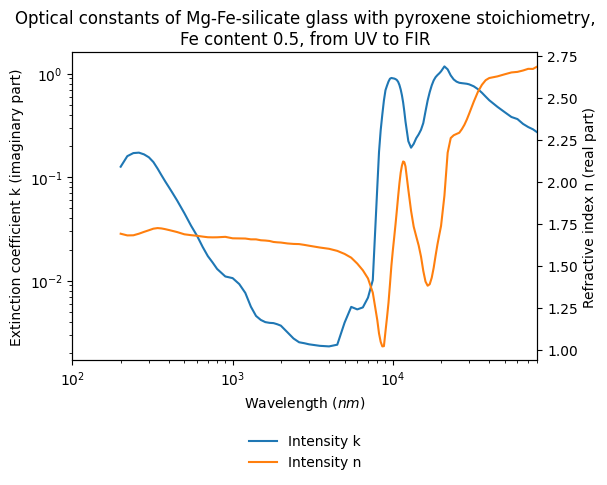- Dorschner, Johann; Begemann, Birgit; Henning, Thomas; Jäger, Cornelia; Mutschke, Harald (1994): Optical constants from UV to FIR for 9 glassy Mg and Mg-Fe-silicates. SSHADE/DOCCD (OSUG Data Center). Dataset/Spectral Data. https://doi.org/10.26302/SSHADE/EXPERIMENT_HM_20170913_001