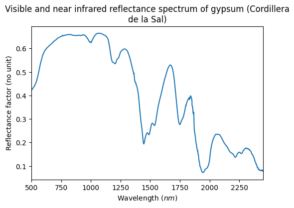 Visible and near infrared reflectance spectrum of gypsum (Cordillera de la Sal)