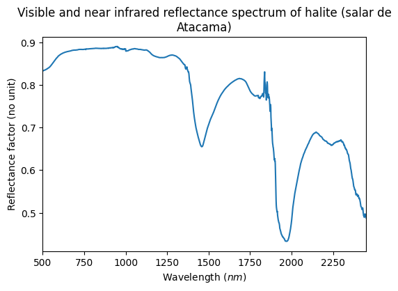 - Flahaut, Jessica; Martinot, Mélissa (2015): Visible near infrared spectra of salt crusts in Andean Salars, Chile. SSHADE/Mirabelle (OSUG Data Center). Dataset/Spectral Data. https://doi.org/10.26302/SSHADE/EXPERIMENT_JF_20201104_001