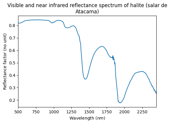 Visible and near infrared reflectance spectrum of halite (salar de Atacama)