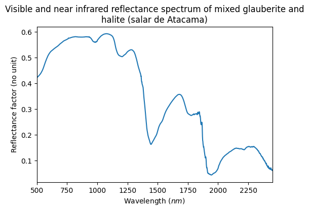 - Flahaut, Jessica; Martinot, Mélissa (2015): Visible near infrared spectra of salt crusts in Andean Salars, Chile. SSHADE/Mirabelle (OSUG Data Center). Dataset/Spectral Data. https://doi.org/10.26302/SSHADE/EXPERIMENT_JF_20201104_001
