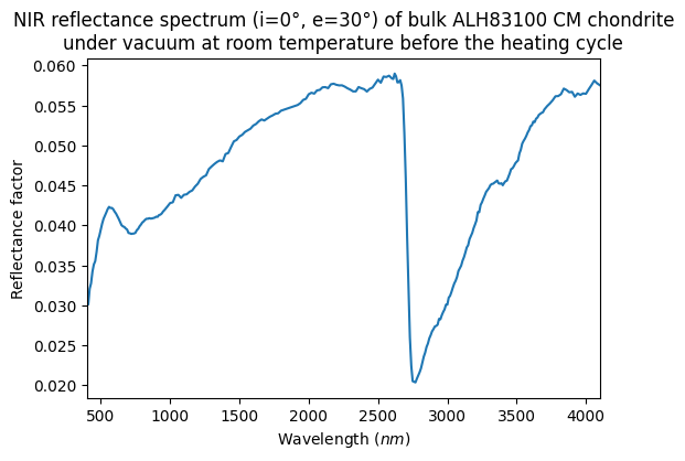 - Potin, Sandra; Beck, Pierre (2019): NIR reflectance spectrum (i=0°, e=30°) of bulk CM, CR, CI and ungrouped chondrites under vacuum at room temperature before and after a heating cycle. SSHADE/GhoSST (OSUG Data Center). Dataset/Spectral Data. https://doi.org/10.26302/SSHADE/EXPERIMENT_LB_20191216_001