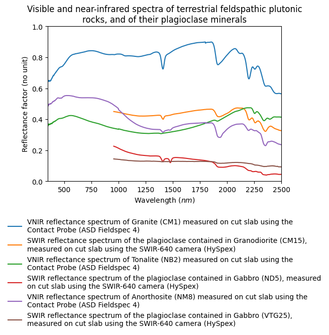 - Barthez, Marie; Flahaut, Jessica (2022): Visible and near-infrared spectra of terrestrial feldspathic plutonic rocks, and of their plagioclase minerals. SSHADE/Mirabelle (OSUG Data Center). Dataset/Spectral Data. https://doi.org/10.26302/SSHADE/EXPERIMENT_MB_20260302_0002