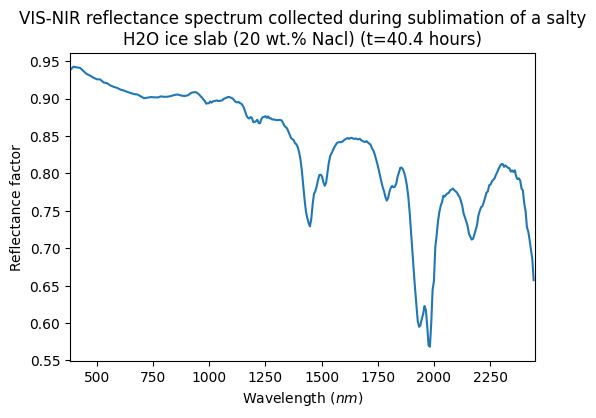 VIS-NIR reflectance spectrum collected during sublimation of a salty H2O ice slab (20 wt.% Nacl) (t=40.4 hours)