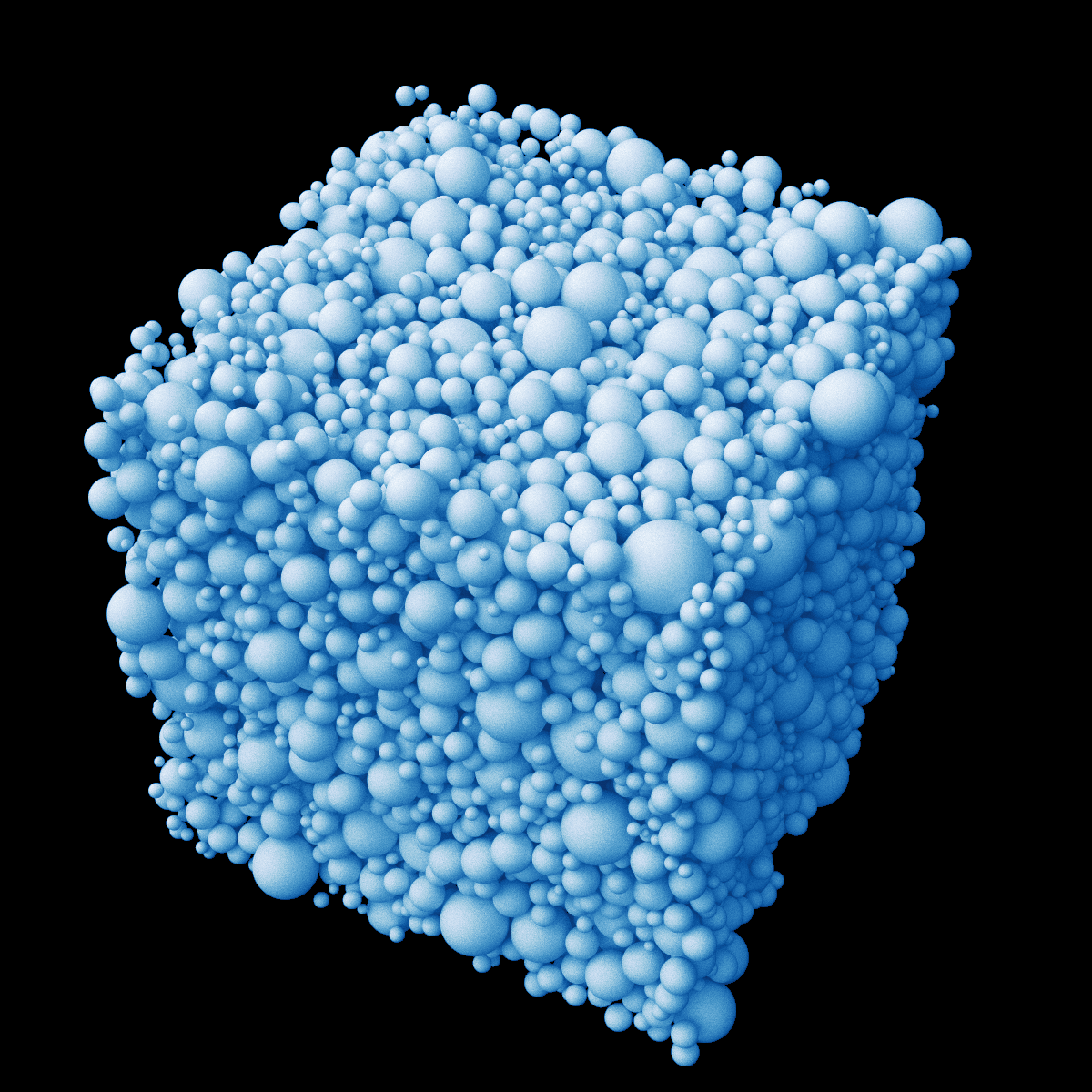 Numerical sample consisting of crystalline H2O ice spherical particles (67 µm average diameter), packed to a semi-infinite medium with volume fraction of 0.5