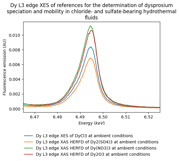 - Dy L3 edge XES of references for the determination of dysprosium speciation and mobility in chloride- and sulfate-bearing hydrothermal fluids