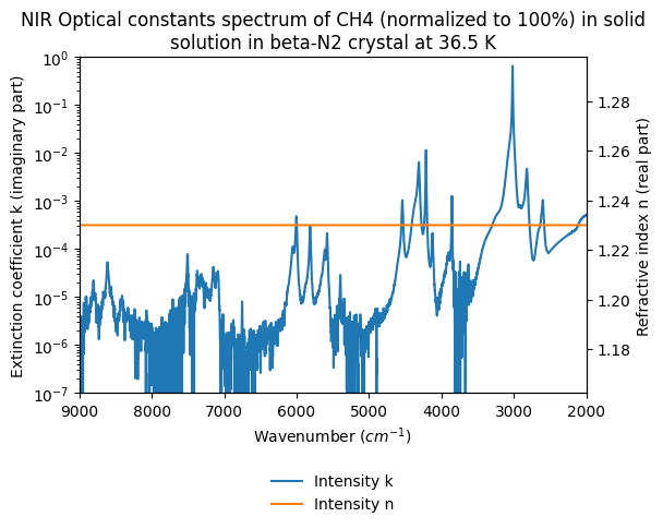 - NIR Optical constants spectrum of CH4 (normalized to 100%) in solid solution in beta-N2 crystal at 36.5 K