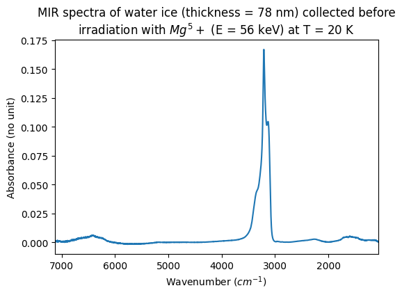 MIR spectra collected before and after irradiation experiments (with different ions at varying energy) of crystalline water ice at temperature from 20 K to 120 K