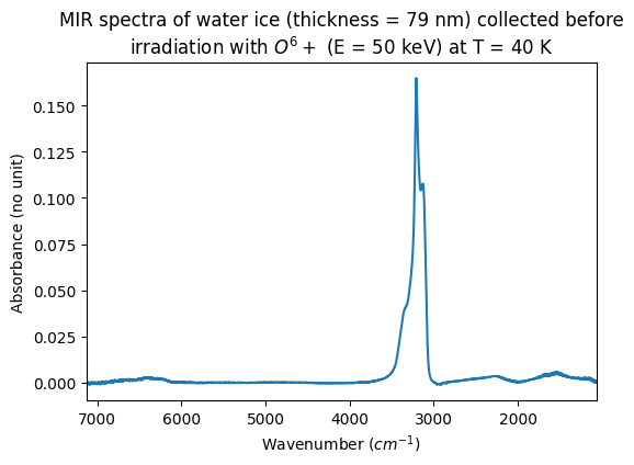 MIR spectra collected before and after irradiation experiments (with different ions at varying energy) of crystalline water ice at temperature from 20 K to 120 K