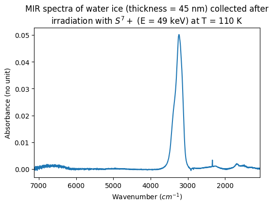 - Moingeon, Audrey; Quirico, Eric; Poch, Olivier; Faure, Mathilde; Boduch, Philippe; Domaracka, Alicja; Rothard, Hermann (2024): MIR spectra collected before and after irradiation experiments (with different ions at varying energy) of crystalline water ice at temperature from 20 K to 120 K. SSHADE/GhoSST (OSUG Data Center). Dataset/Spectral Data. https://doi.org/10.26302/SSHADE/EXPERIMENT_LB_20250630_001