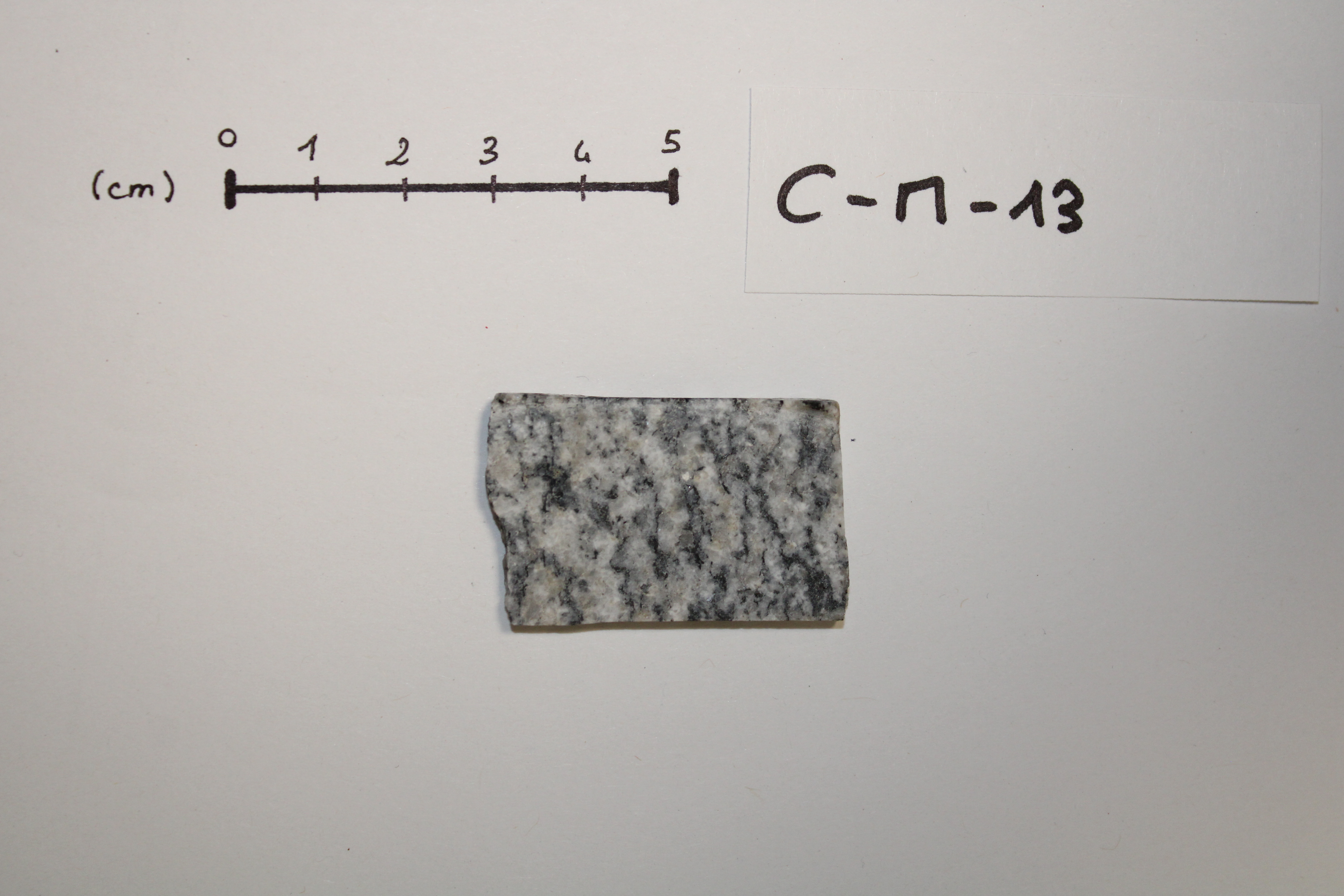 Granodiorite (CM13) sample cut in the form of a sugar.