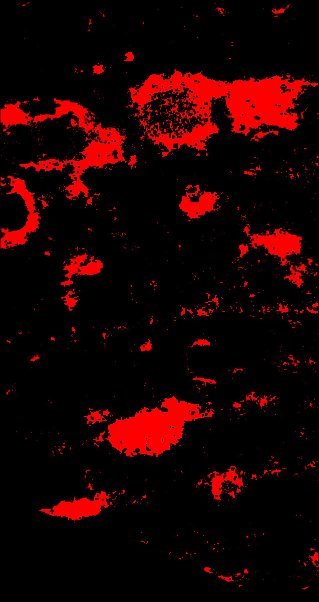 SWIR hyperspectral cube processed with ENVI : plagioclase SAM classification.
