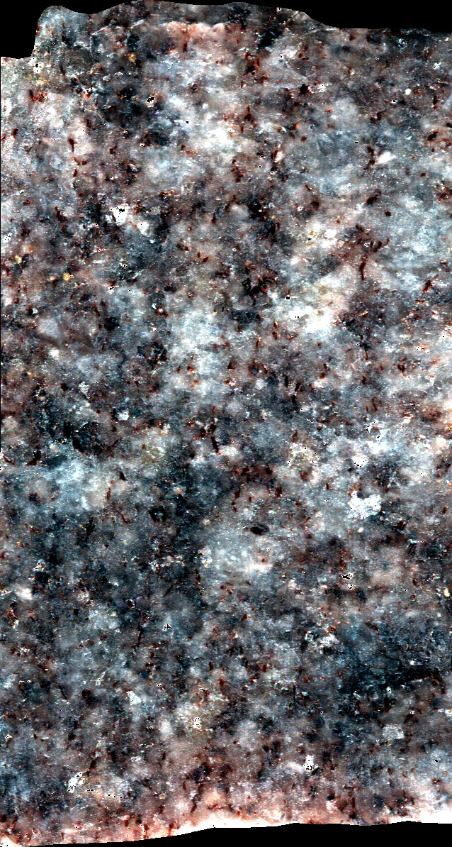 - CM3 sample cut in the form of a sugar. This plutonic rock is mainly composed of plagioclase, quartz, biotite, muscovite and K-feldspars (origin : Western Dharwar, INDIA).