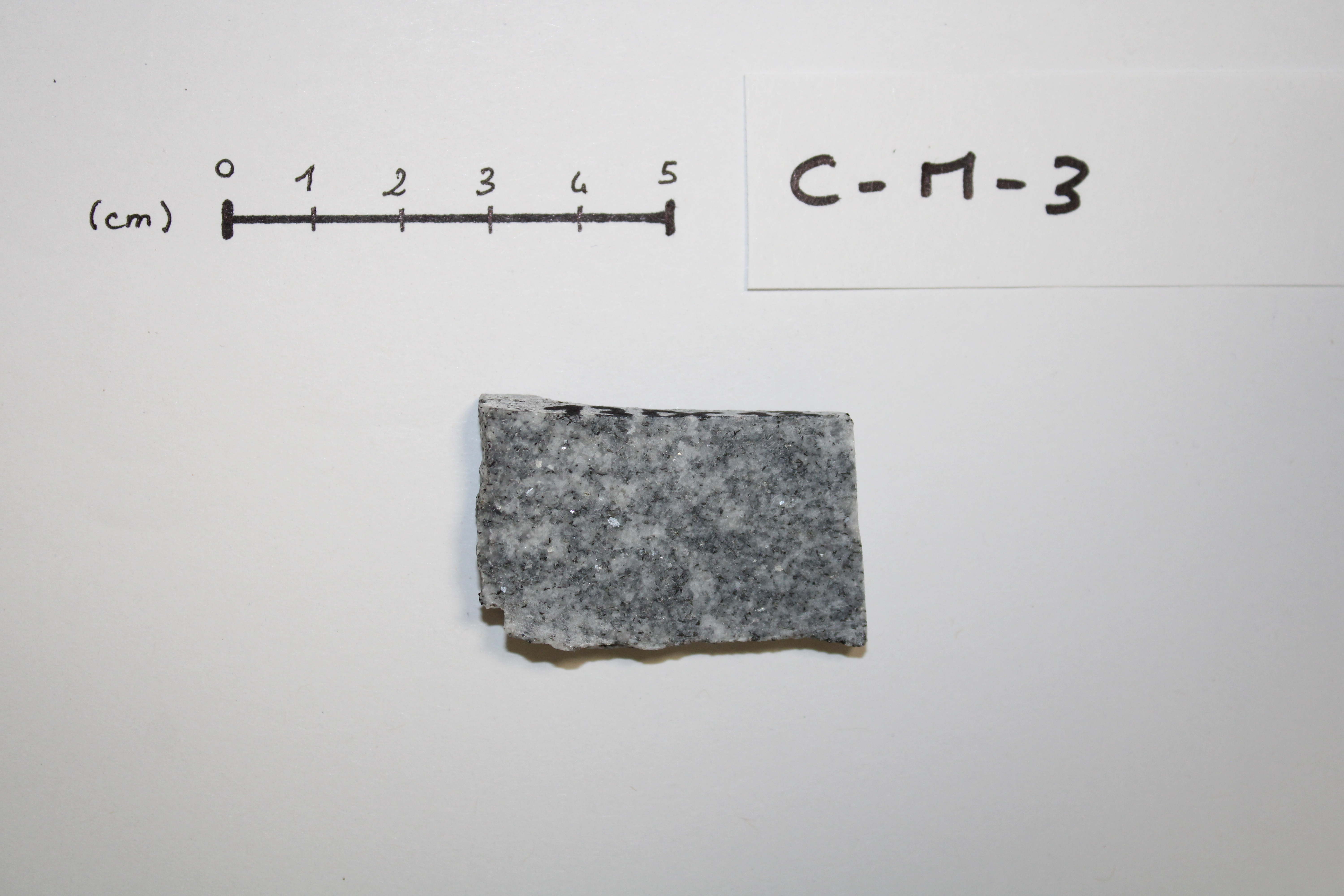 Granodiorite (CM3) sample cut in the form of a sugar.