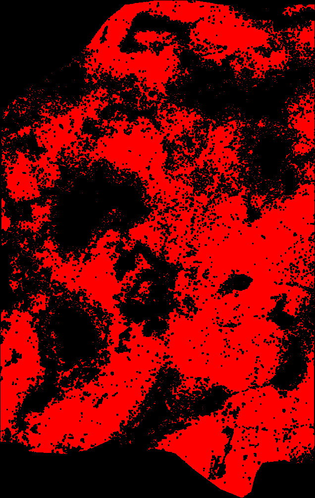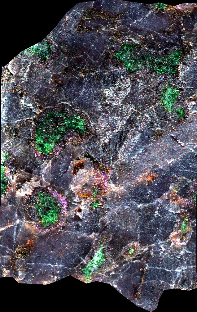 SWIR hyperspectral cube processed with ENVI : plagioclase SAM classification.