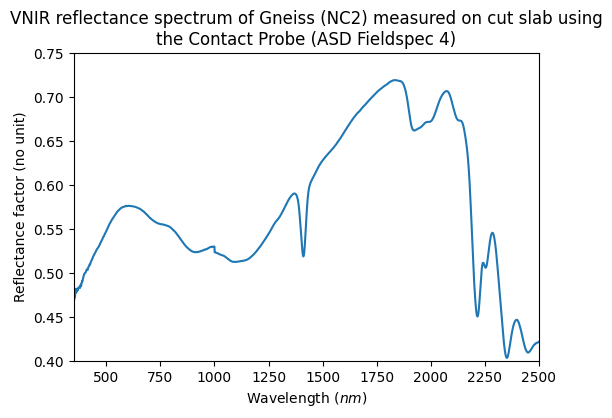 - ASD Fieldspec4 – biconical reflection Visible to near-infrared