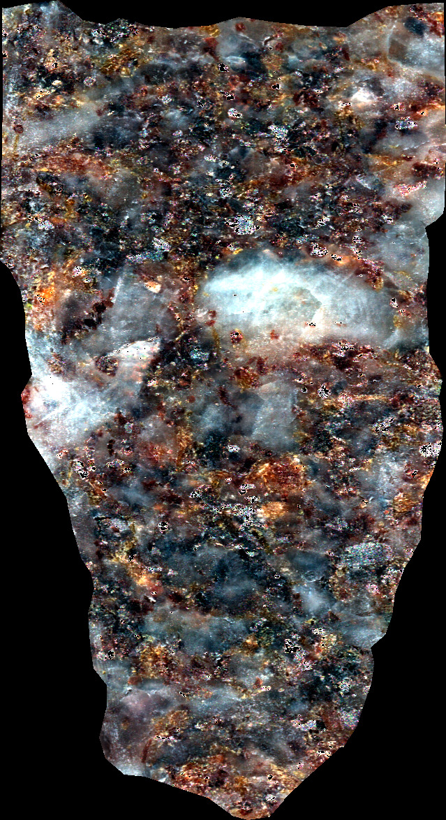 NJ8 sample cut in the form of a sugar. This plutonic rock is mainly composed of plagioclase, quartz, biotite, amphibole and K-feldspar (origin : Vosges, FRANCE).