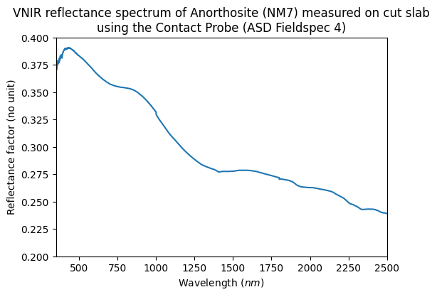 - Barthez, Marie; Flahaut, Jessica (2022): Visible and near-infrared spectra of terrestrial feldspathic plutonic rocks, and of their plagioclase minerals. SSHADE/Mirabelle (OSUG Data Center). Dataset/Spectral Data. https://doi.org/10.26302/SSHADE/EXPERIMENT_MB_20260302_0002