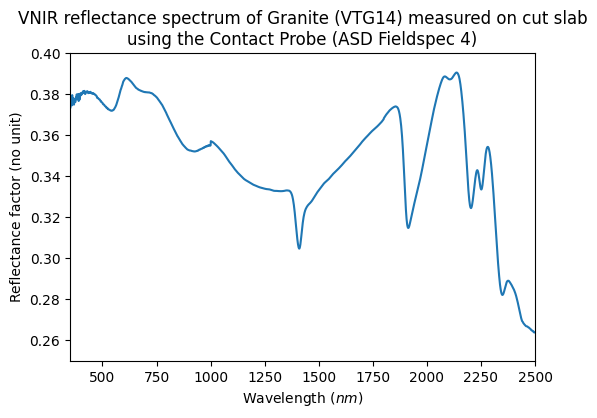 - 350.0 - 1000.0 $nm$ ; 1001.0 - 2500.0 $nm$
