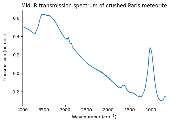 - Djouadi, Zahia (2025): Far and Mid IR transmission and Raman spectra of crushed Asuka 12236 and Paris meteorites. SSHADE/DAYSY (OSUG Data Center). Dataset/Spectral Data. https://doi.org/10.26302/SSHADE/EXPERIMENT_ZED_20250602_01